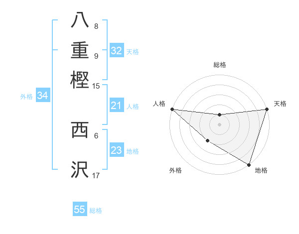八重樫 西沢さんの天格は32画の5点!