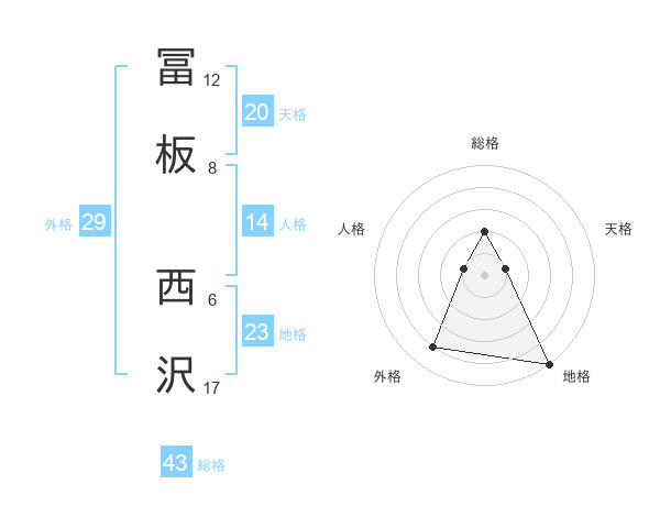 冨板 西沢さんを姓名の画数から五運を鑑定