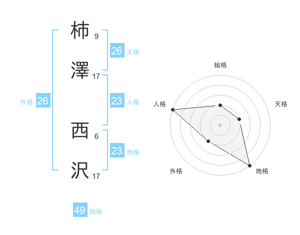 柿澤 西沢さんを姓名の画数から五運を鑑定