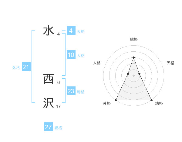 水 西沢さんの総格は27画の3点!