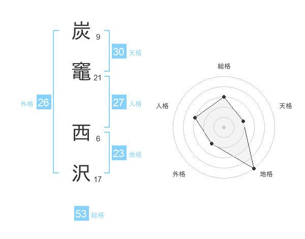 炭竈 西沢さんの総格は53画の3点!