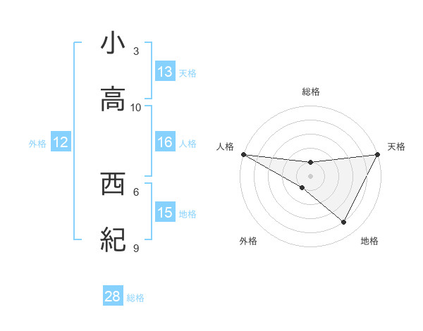 小高 西紀さんの総格は28画の1点!