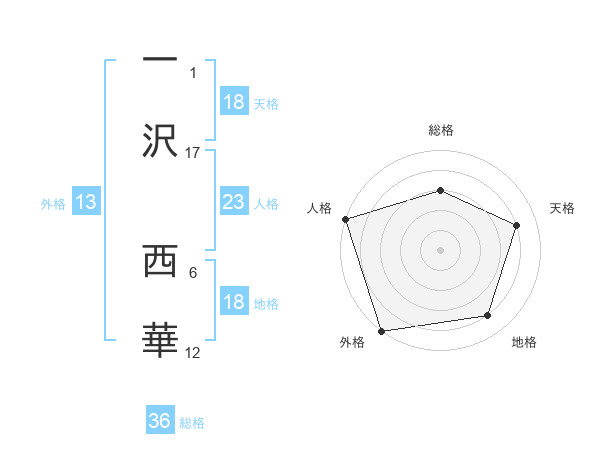 一沢 西華さんの外格は13画の5点!