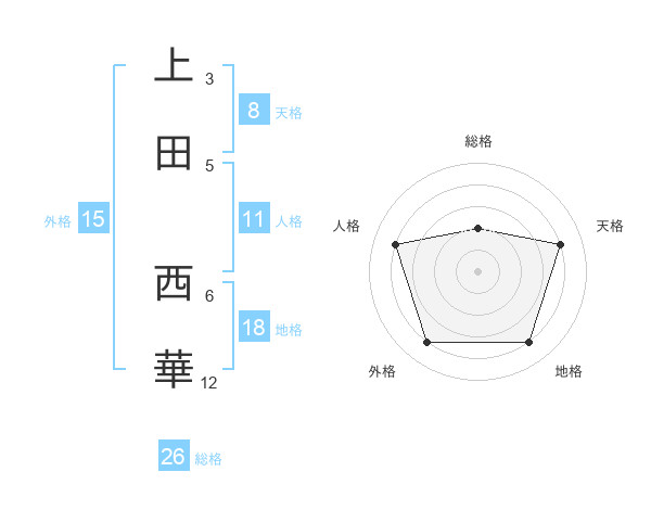 上田 西華さんの天格は8画の4点!