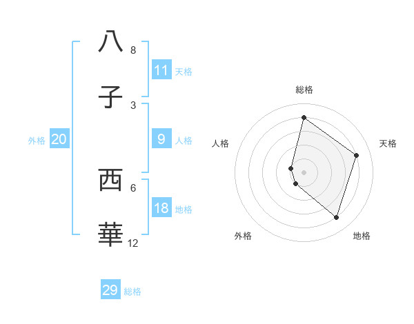 八子 西華さんの総格は29画の4点!