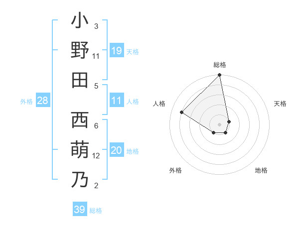 小野田 西萌乃さんを姓名の画数から五運を鑑定