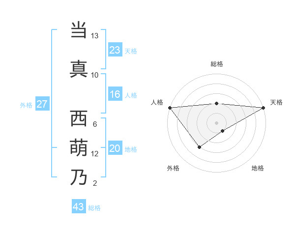 当真 西萌乃さんを姓名の画数から五運を鑑定