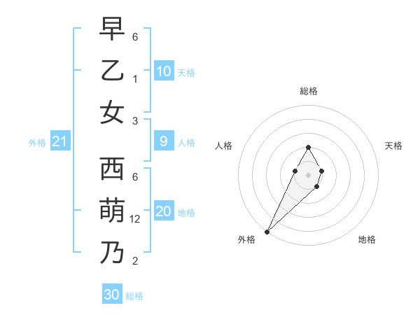 早乙女 西萌乃さんを姓名の画数から五運を鑑定