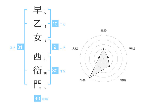 早乙女 西衞門さんを姓名の画数から五運を鑑定