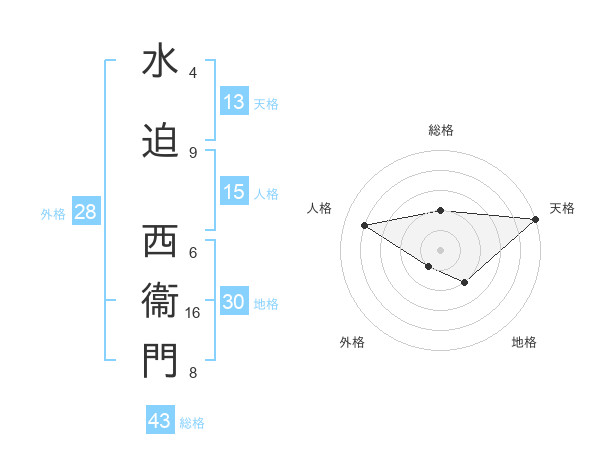 水迫 西衞門さんの総格は43画の2点!