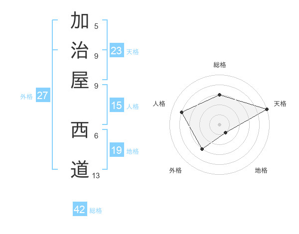 加治屋 西道さんを姓名の画数から五運を鑑定