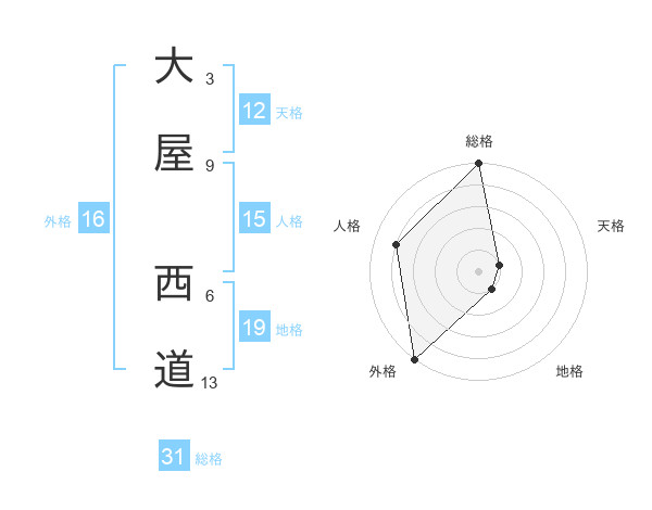 大屋 西道さんの総格は31画の5点!