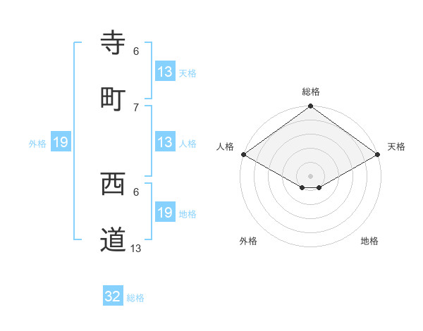寺町 西道さんの天格は13画の5点!