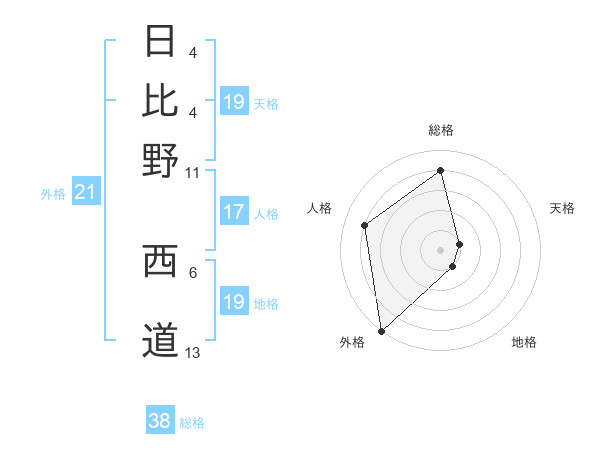 日比野 西道さんの総格は38画の4点!