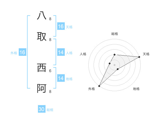 八取 西阿さんの総格は30画の2点!