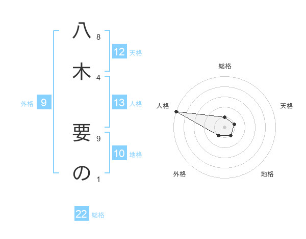 八木 要のさんを姓名の画数から五運を鑑定