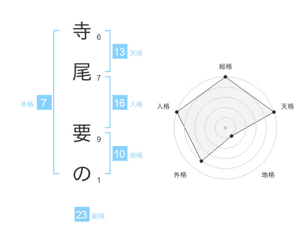 寺尾 要のさんの天格は13画の5点!