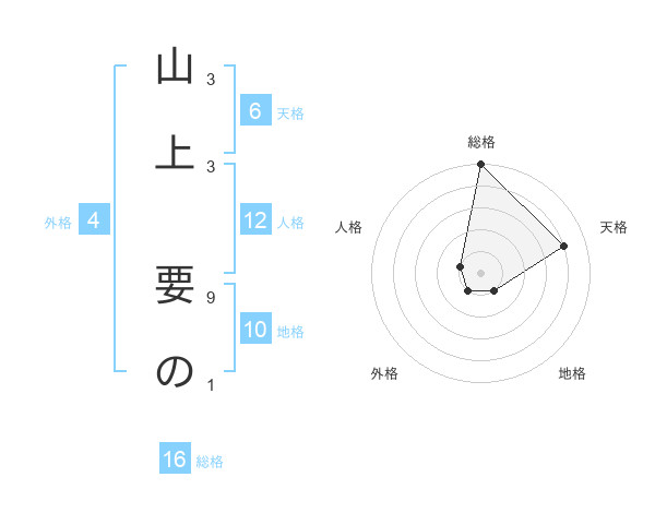 山上 要のさんの総格は16画の5点!