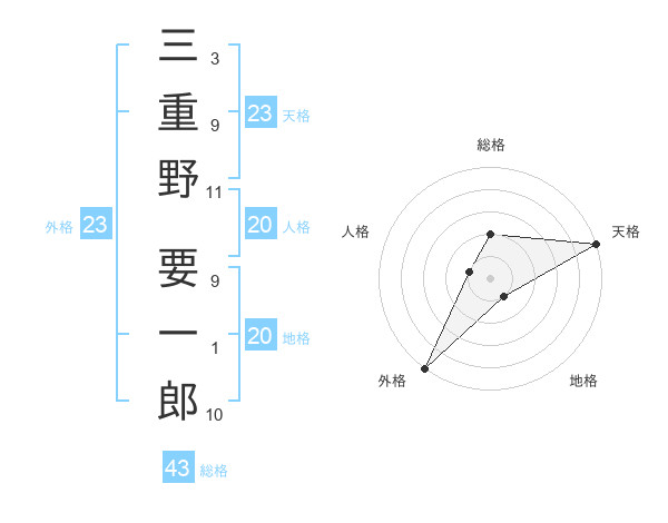 三重野 要一郎さんの天格は23画の5点!