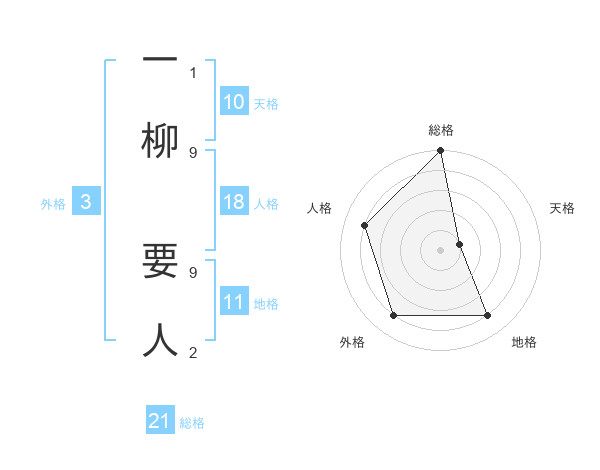 一柳 要人さんの総格は21画の5点!