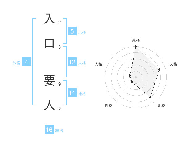 入口 要人さんの総格は16画の5点!