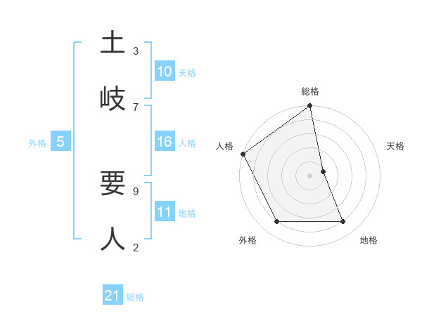 土岐 要人さんの総格は21画の5点!