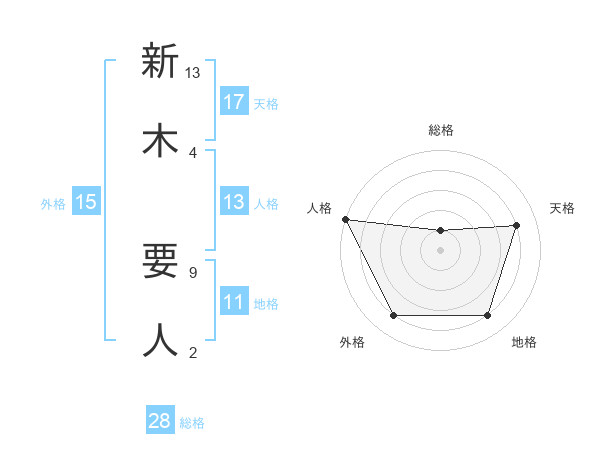 新木 要人さんの天格は17画の4点!