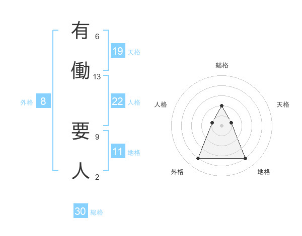有働 要人さんの天格は19画の1点!