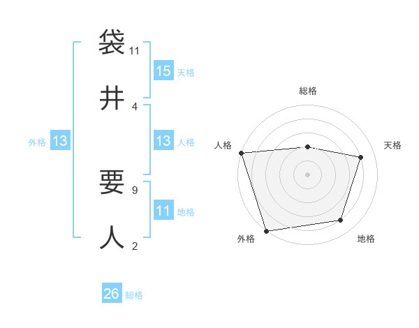 袋井 要人さんの総格は26画の2点!