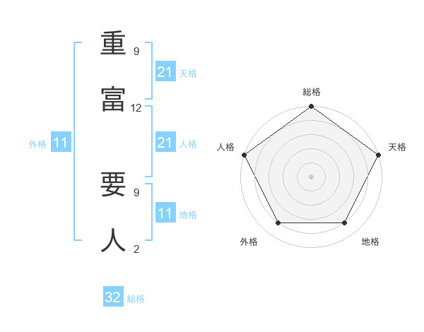 重富 要人さんの人格は21画の5点!