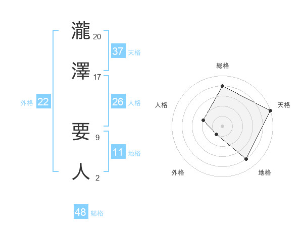 瀧澤 要人さんを姓名の画数から五運を鑑定