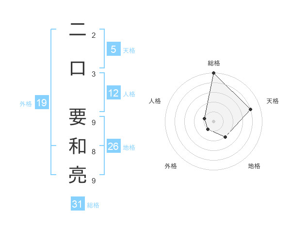 二口 要和亮さんを姓名の画数から五運を鑑定