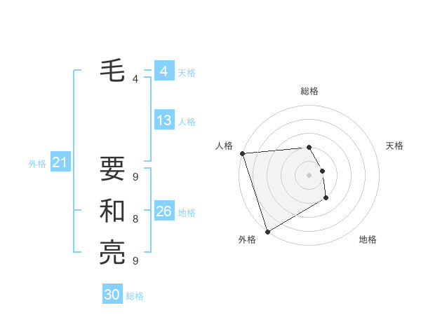 毛 要和亮さんの総格は30画の2点!