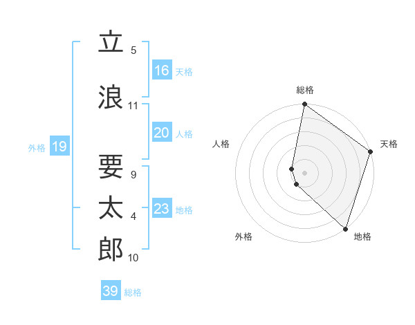 立浪 要太郎さんの天格は16画の5点!