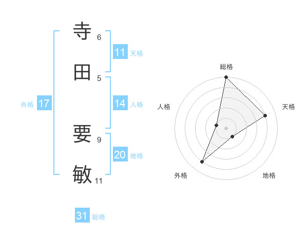 寺田 要敏さんを姓名の画数から五運を鑑定