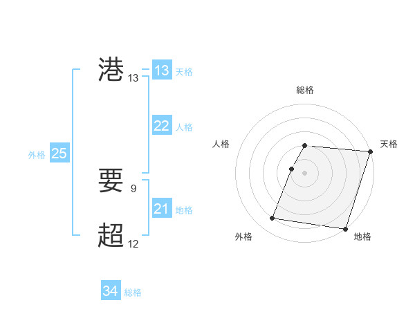 港 要超さんの地格は21画の5点!