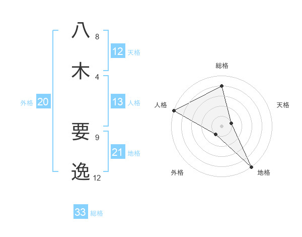 八木 要逸さんの総格は33画の4点!