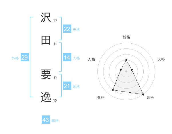 沢田 要逸さんの天格は22画の1点!