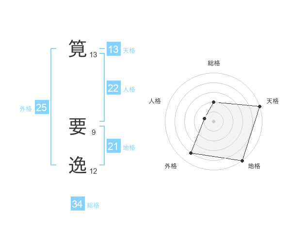 筧 要逸さんの総格は34画の2点!
