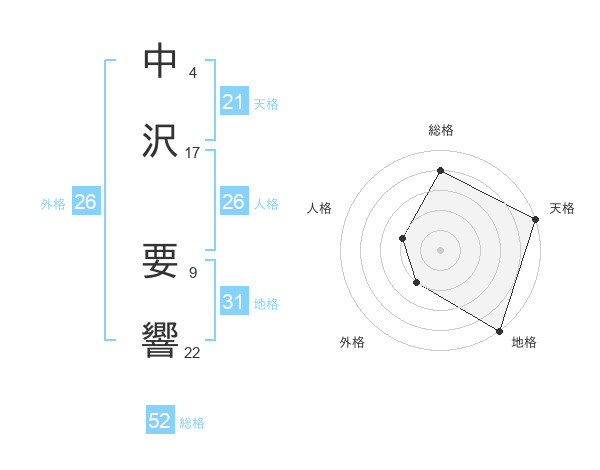 中沢 要響さんの総格は52画の4点!