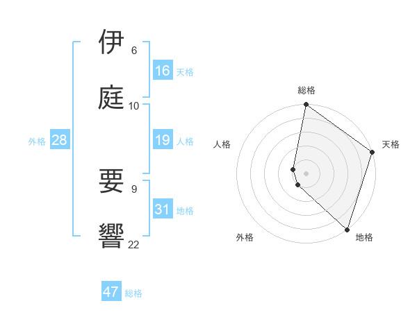 伊庭 要響さんを姓名の画数から五運を鑑定