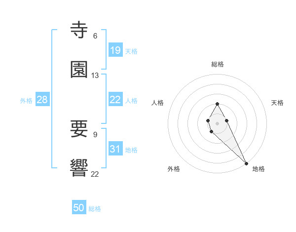 寺園 要響さんの総格は50画の2点!