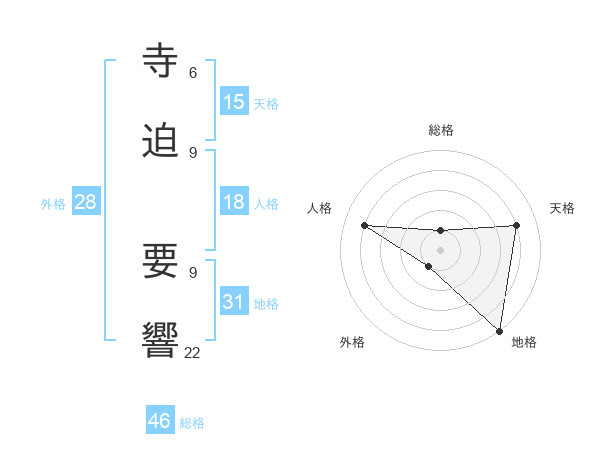 寺迫 要響さんを姓名の画数から五運を鑑定