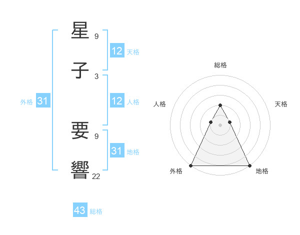 星子 要響さんの総格は43画の2点!