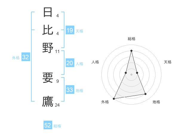 日比野 要鷹さんの総格は52画の4点!