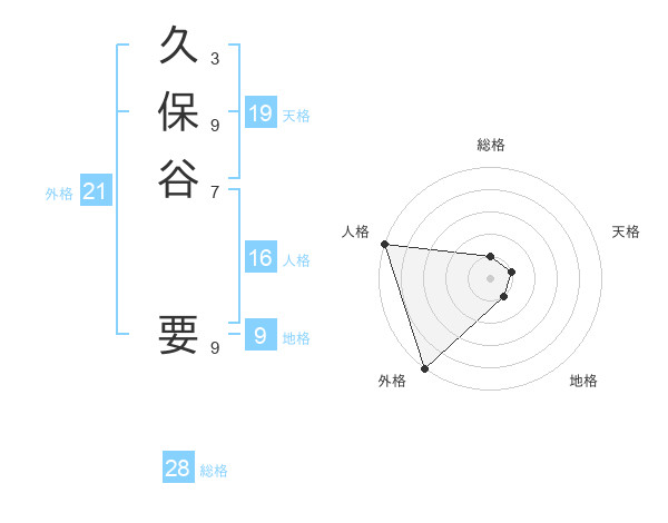 久保谷 要さんの総格は28画の1点!