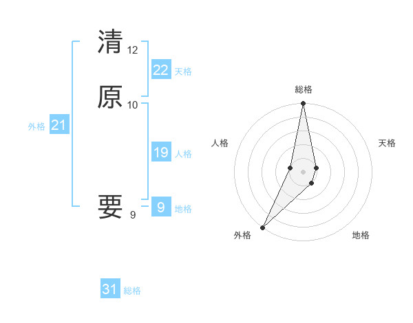 清原 要さんの総格は31画の5点!