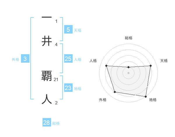 一井 覇人さんの地格は23画の5点!