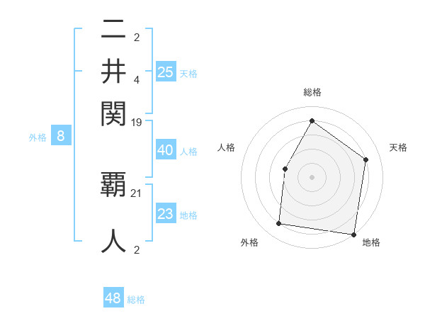 二井関 覇人さんを姓名の画数から五運を鑑定