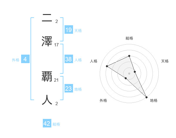 二澤 覇人さんを姓名の画数から五運を鑑定